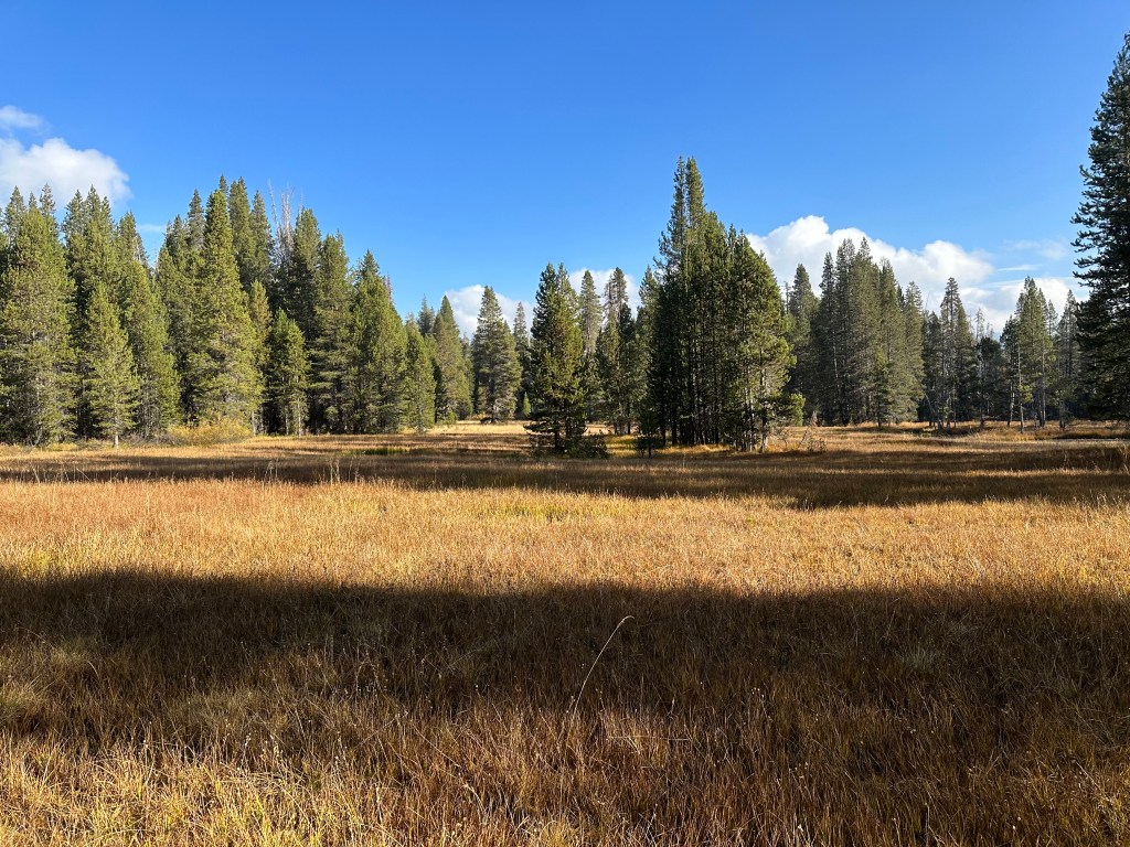 Once you get to the top of the falls, you can take a walk a quarter of a mile to the edge that gives you a great view of the valley and a view of the top of the falls. It’s definitely worth it, but the view you’re going to get later will be so much better. After taking a look at the view, walk back to the fork in the trail at the top of the switchbacks and you will see a sign that says “El Capitan” that will be your trail. You will hike along that trail for about 2-1/2 miles until you heat Eagle Peak meadows. Once you hit the meadows, immediately take a right and start hiking straight through the woods.